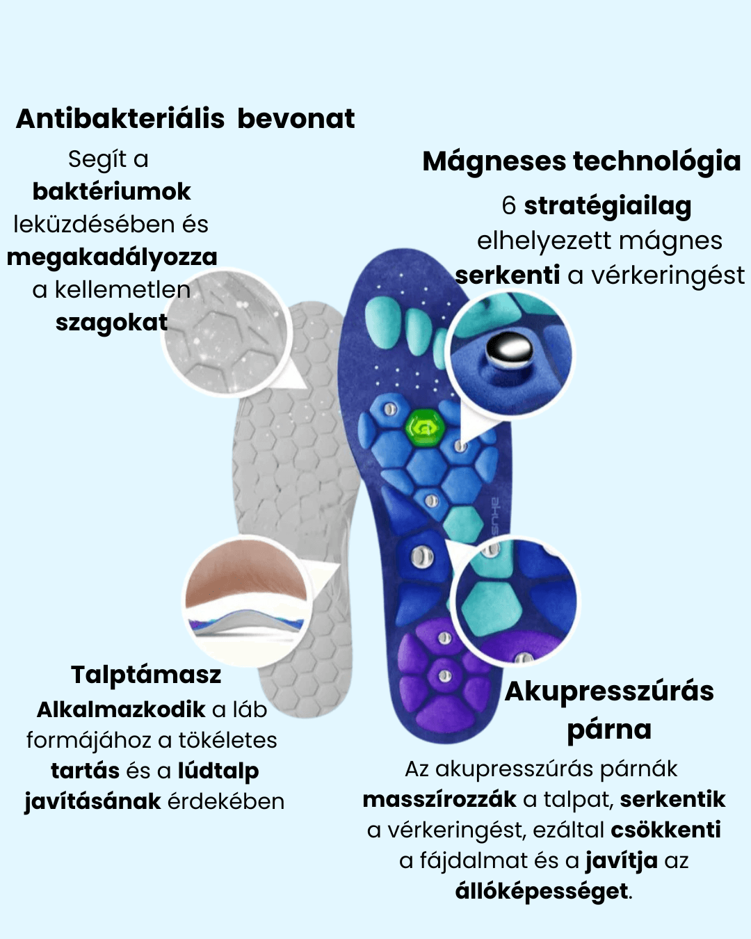 Felejtsd el a lábfáradtságot! Ismerd meg az akupresszúra és kényelem erejét egyetlen talpbetétben. Minden lépés egy masszázs!