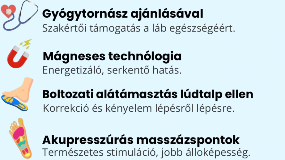 - Lábfáradtság: Csökkenti a hosszú állás vagy járás okozta fájdalmat és feszültséget.